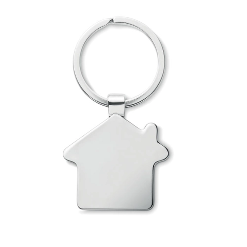 House shaped zinc alloy key ring with bamboo front. Bamboo is a natural product, there may be slight variations in colour and size per item, which can affect the final decoration outcome.