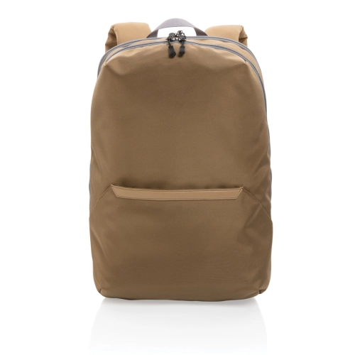 Look sharp in and out of the office with this sleek looking minimalistic design backpack. The backpack features a separate 15.6 inch laptop compartment and a zipper front pocket. The exterior material and lining is made with recycled polyester. With AWARE™ tracer that validates the genuine use of recycled materials. Each bag has reused 32.7 0.5L PET bottles. 2% of proceeds of each Impact product sold will be donated to Water.org. PVC free.