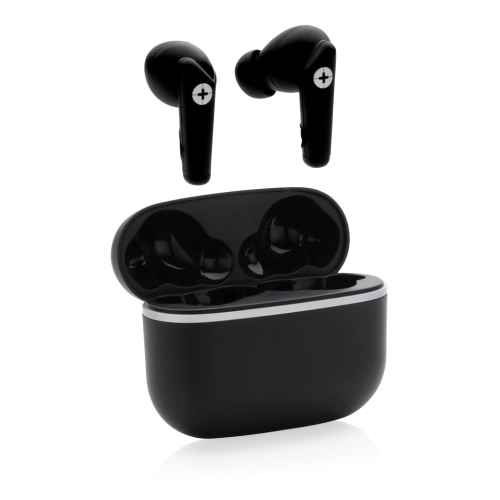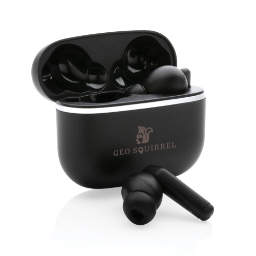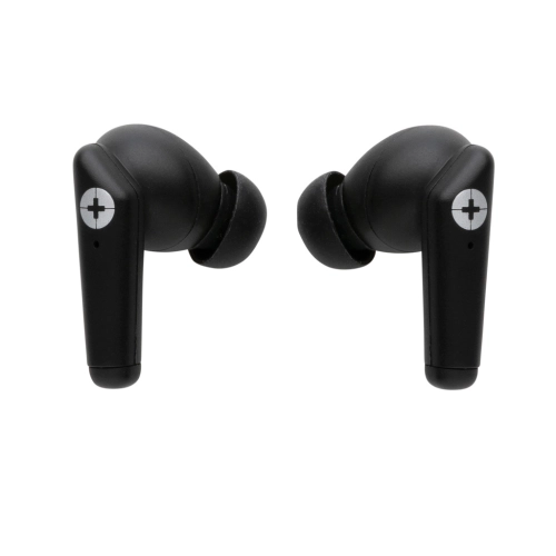 New generation true wireless earbuds. The earbuds and charging case are made with RCS (Recycled Claim Standard) certified recycled ABS. Total recycled content: 59% based on total item weight. RCS certification ensures a completely certified supply chain of the recycled materials. The earbuds come in a compact 400 mAh charging case that allows you to charge and take your earbuds wherever you go. The earbuds use BT 5.3 for automatic pairing without any hassle and with a stable connection. The earbuds have a 40 mAh battery that allows a play time of up to 4 hours and can be re-charged in 1.5 hours in the charging case. The wireless distance range is up to 10 metres. Including type C charging cable made from GRS certified recycled TPE. Packed in FSC® mix gift box. Item and accessories 100% PVC free